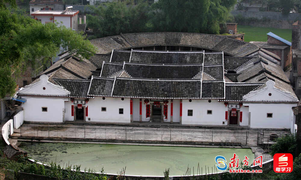 据了解,梅州兴宁的围龙屋数量最多、最密集,种类也较为齐全,在2012年11月被中国民间文艺家协会命名为“中国围龙屋之乡”。据调查,经过近千年的发展,当地的围龙屋已发展出标准的半月形横堂式、棋盘式走马廊的围楼式、四点金式、并蒂莲式等七种类型。