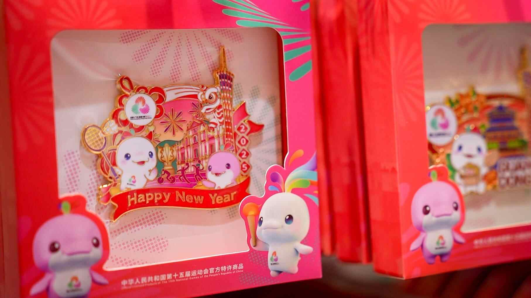 “可爱到发芽”的“喜洋洋”“乐融融”一经亮相便迅速吸引众多市民驻足选购。店内售卖的特许商品不仅设计新颖多元,更巧妙融入新春元素,这些特许商品不仅承载着推广十五运会品牌、传播体育精神和主办城市文化特色,也展现喜庆祥和的节日氛围与岭南年味。