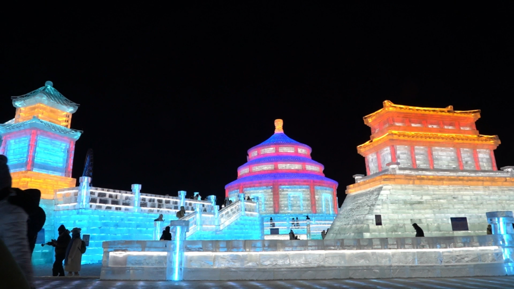 在冰雕雪塑的世界里,一座座以中式建筑为蓝本的冰建筑巍峨耸立,哈尔滨不断向世界展示多姿多彩的国风元素。匠人们凭借精湛技艺,以冰雪为笔,缓缓铺陈开一幅幅中国历史文化的壮丽画卷。