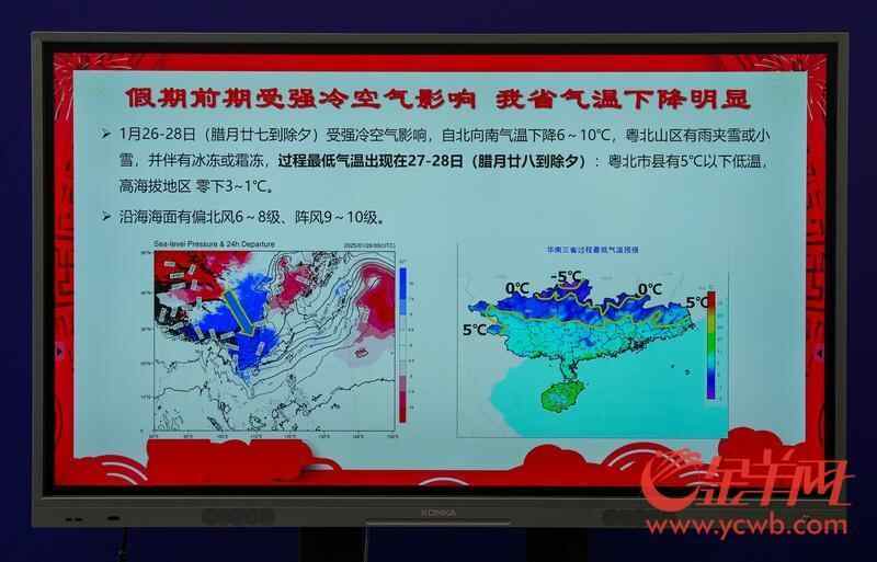 根据广东省气象台1月24日预计,强冷空气前锋将在25日夜间到达粤北,26日早晨到达广州市区,26日中午到达广东南部沿海。