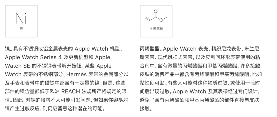 苹果官方声明如下:“用户可以放心、安全佩戴苹果 Apple Watch 表带。在 Apple Watch 出厂之前,均经过严苛的测试,此外我们还和独立实验室合作,对我们产品中使用的材料(包括 Apple Watch 表带)进行严格的测试和分析。”