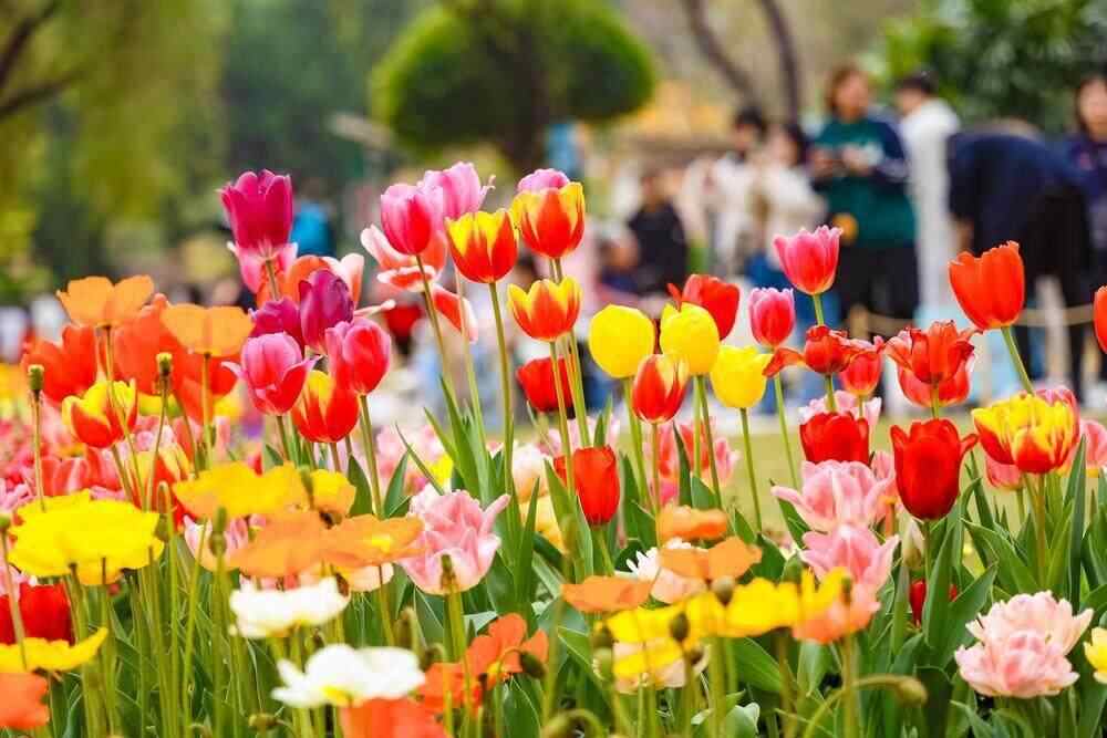 2025云台花园郁金香花展如约而至,12万株五彩斑斓的郁金香竞相绽放,整个花园如梦如幻,邀请广大市民共同开启一场浪漫的春日盛宴。