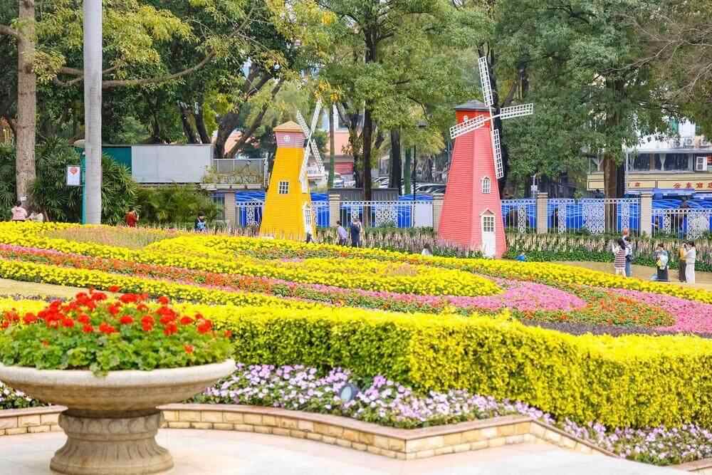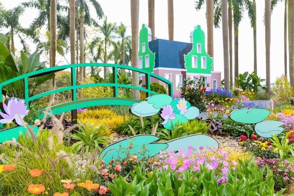 “本次郁金香花展以印象派画作的艺术世界为灵感,注重色彩的搭配,打造‘大自然的调色盘’。同时,我们的花境设计也注重人的主体性,游客可以进入其中拍照,仿佛成为油画主角。”云台花园景区管理中心的技术人员李晓静介绍道,本次花卉整体布置以名画《郁金香田与莱金斯堡风车》为灵感,将多色郁金香组成的郁金香花田作为基底,同时融入莫奈故居元素,精心营造了多个打卡点,让游客定格专属自己的美好瞬间。
