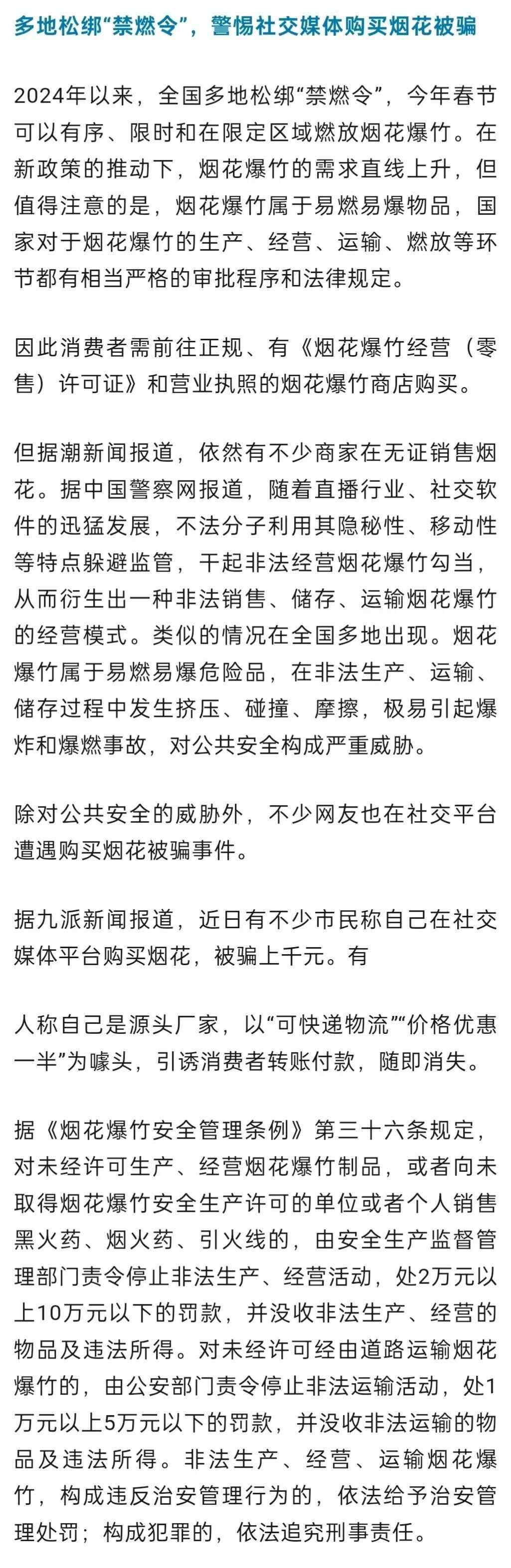 单价上涨的另一面是“供小于求”,据光明网报道,多名网友表示,江苏常熟一家烟花爆竹批发企业的门市部还限购“加特林”,只有购买金额满1000元才能买“加特林”。
