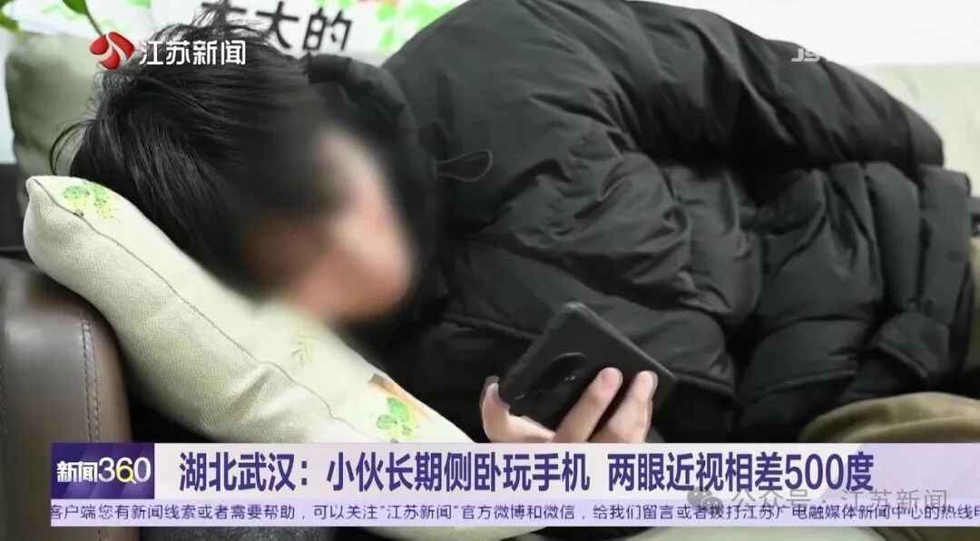 躺着玩手机,相信是不少人生活中的常态。湖北武汉的小伙小魏休息时最喜欢侧卧着玩手机,最近他发现眼睛看东西出现模糊的症状,到医院一检查两只眼睛的近视度数竟相差了500度、