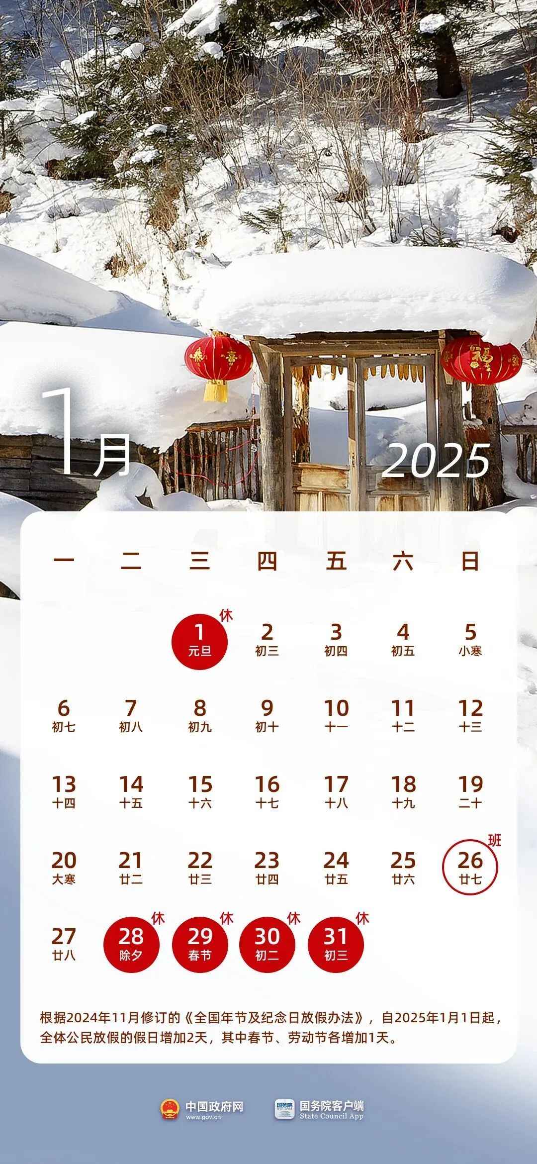 今年春节放假时间为