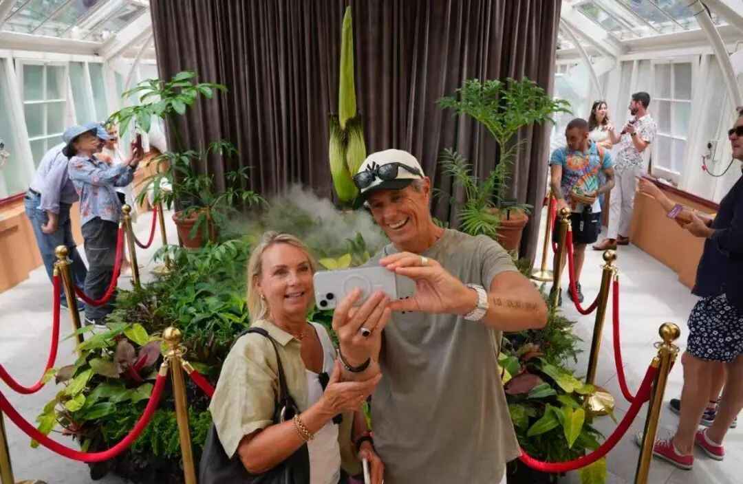 去年6月,英国皇家植物园的尸体花绽放时,也吸引了大量植物爱好者前往观看。