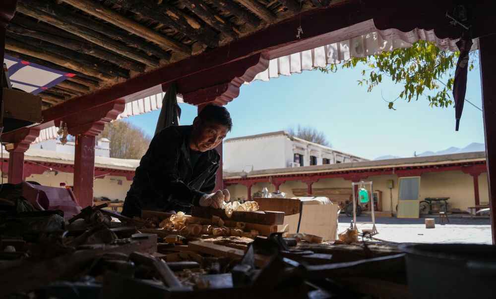 木匠普琼正在制作布达拉宫修缮所需木构件。新华社记者 晋美多吉 摄