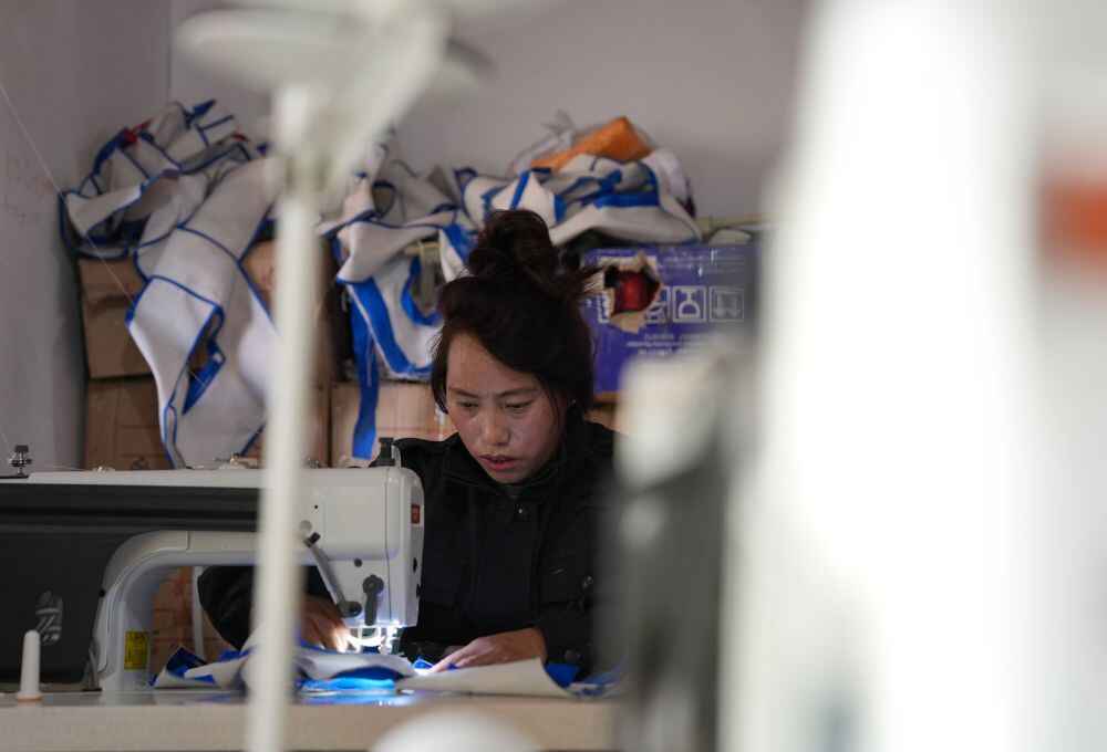 裁缝组正在为布达拉宫缝制藏式门帘。新华社记者 晋美多吉 摄