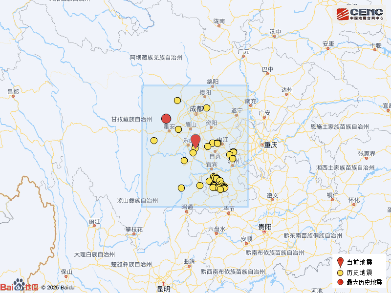 历史地震:根据中国地震台网速报目录,震中周边200公里内近5年来发生3级以上地震共220次,最大地震是2022年6月1日在四川雅安市芦山县发生的6.1级地震(距离本次震中141公里),按震级大小前50次历史地震分布如图。