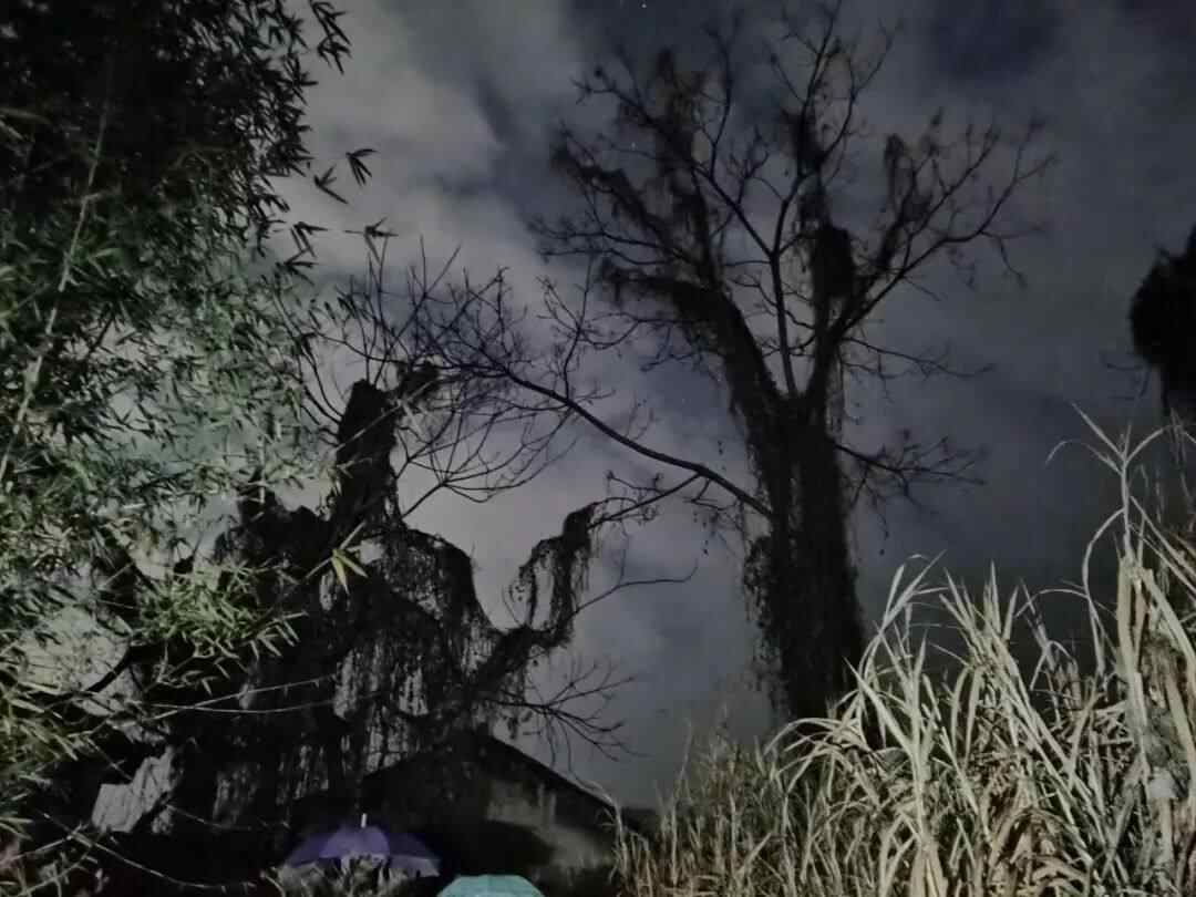夜里10点半左右吧,我们决定夜游湖心坝废墟。天色很清,但毕竟也是黑夜,黑色晃荡,或浓或淡:星星很亮,还有白云缕缕,竟看得清晰。这些古建筑,在黑暗里,显得更加神秘,有远有近,有浓有淡,有空气的流动,有各种想象交织出来的诸般神鬼,所以,变得特别神秘。周围除了我、颜长江、虹姐、小王老师、高妃,还有副镇长他们。夜里真是安静,唯余寒蛩不住鸣。