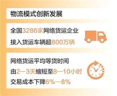 网络货运平台发展方兴未艾,全国3286家网络货运企业,接入货运车辆超800万辆,连接起730多万名驾驶员。与传统运输方式相比,网络货运平均等货时间由2—3天缩短至8—10小时,交易成本下降6%—8%。