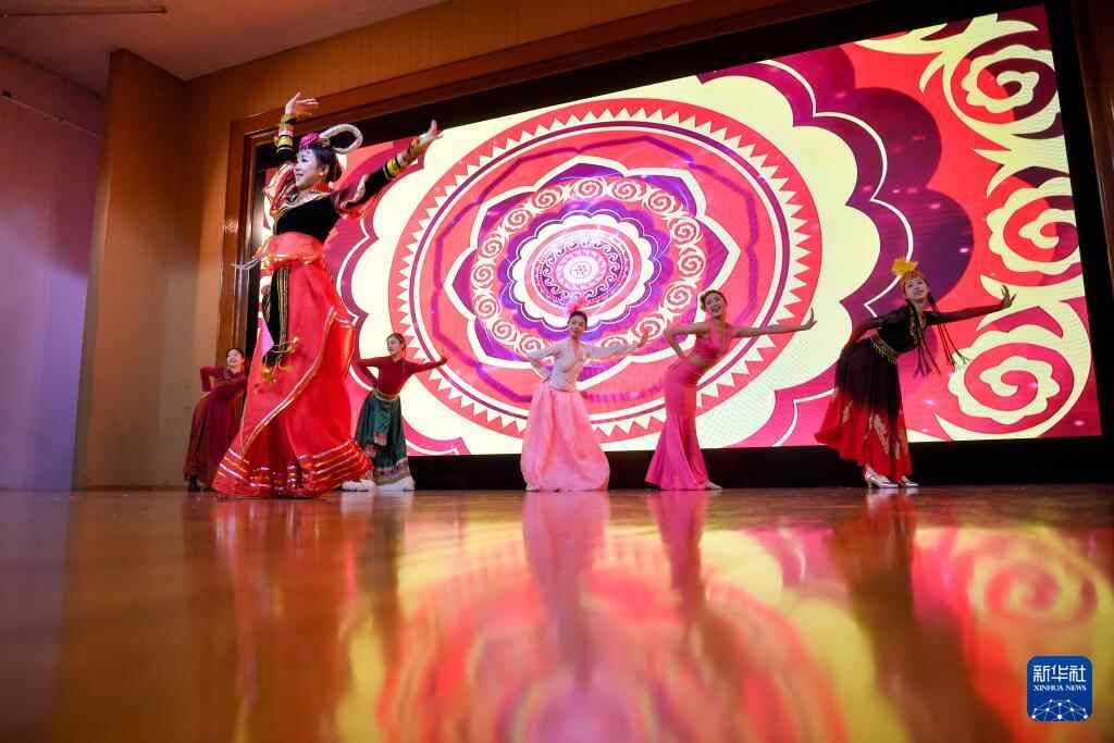 1月24日,在俄罗斯首都莫斯科,演员在中国驻俄罗斯大使馆举办的2025年俄罗斯友人新春招待会上表演舞蹈。新华社发(亚历山大摄)