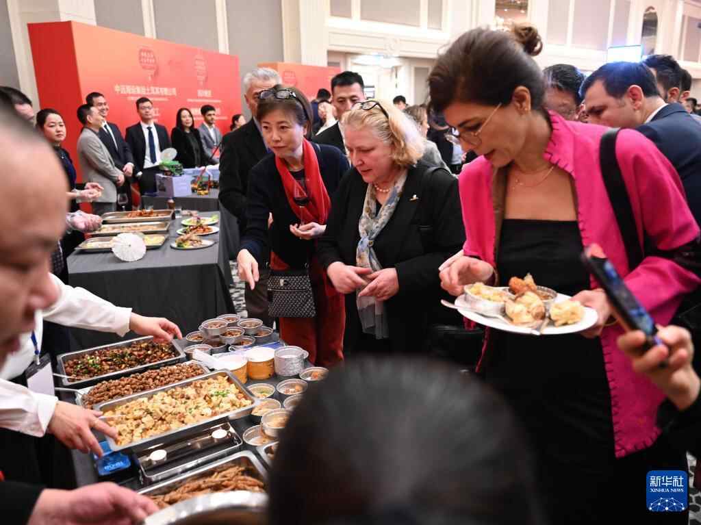 1月19日,在土耳其伊斯坦布尔,来宾在中国驻伊斯坦布尔总领馆举办的新春招待会上品尝美食。新华社记者 刘磊 摄