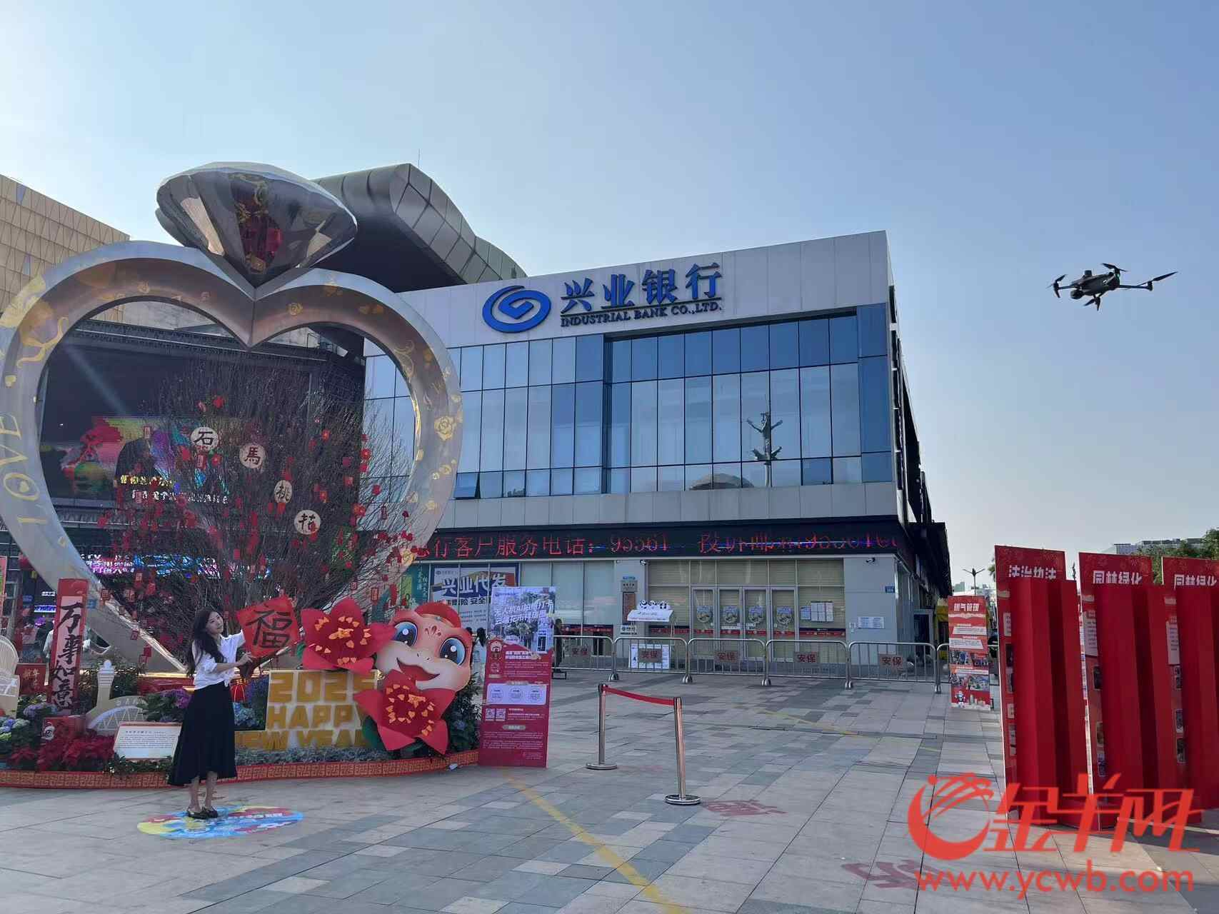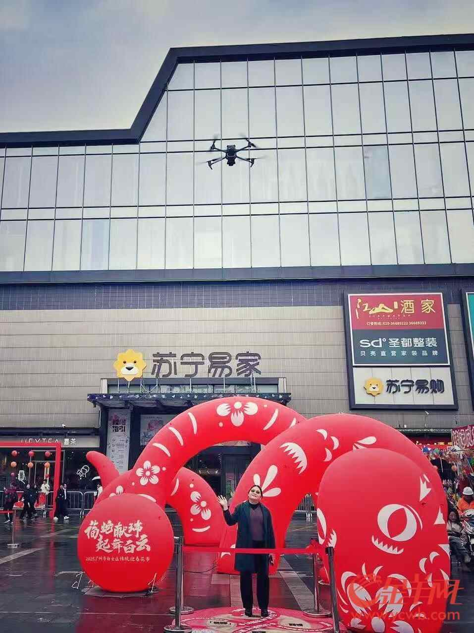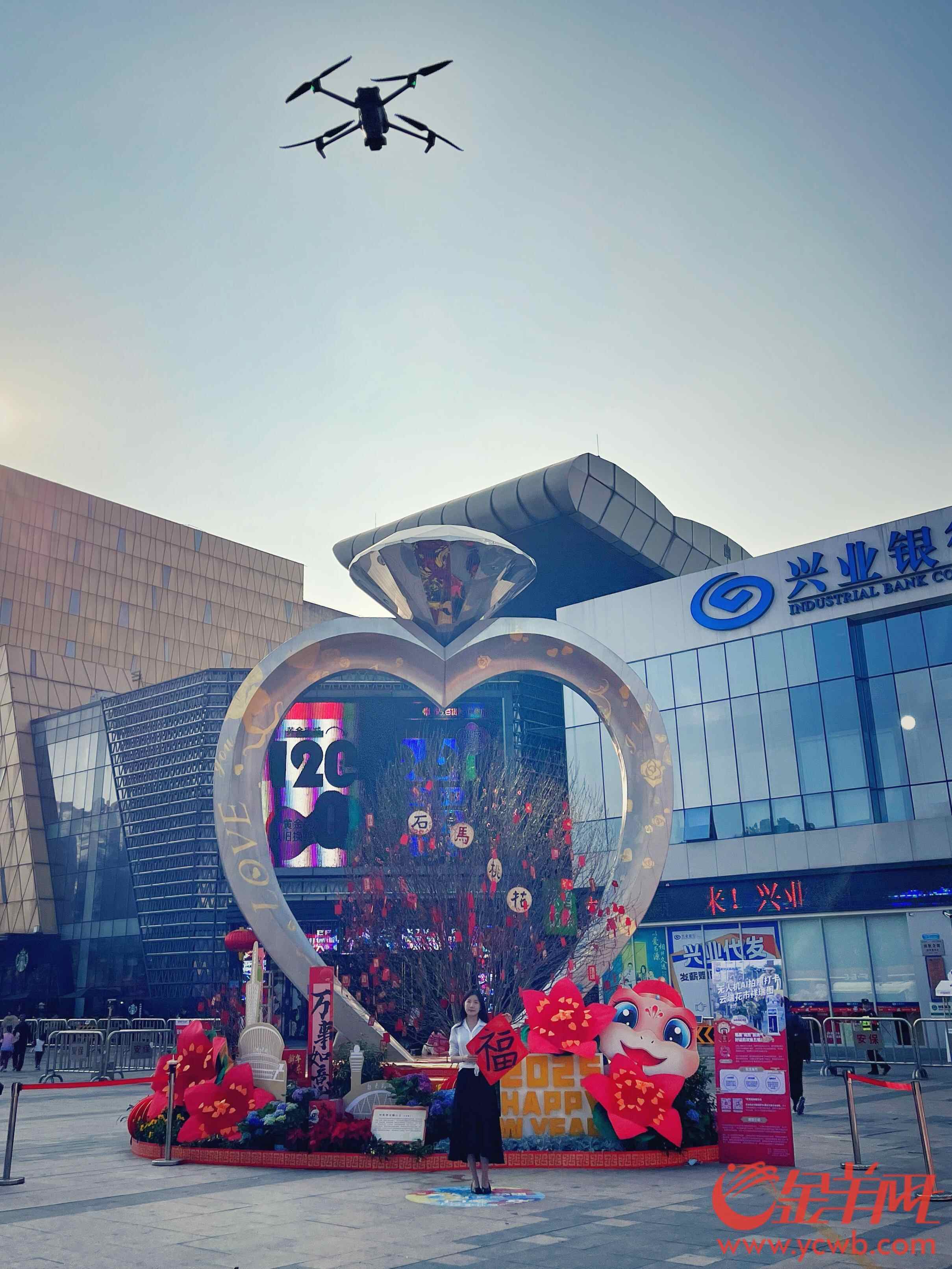 1月26日,白云花市在白云万达广场开市。喜庆热闹的牌楼、巨型福蛇、石马桃花王等成为市民拍照打卡的首选。担心地面拍照角度单一?不怕,今年白云花市还有新的打卡角度。
