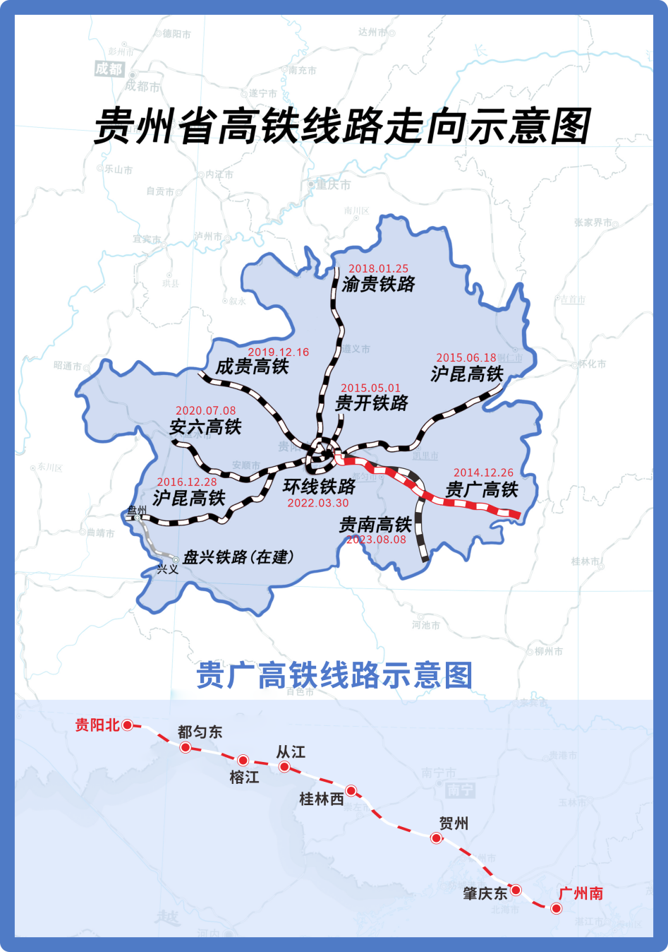 贵州高铁版图:8条线路支撑“交通大动脉”,日常开行700多趟列车。
