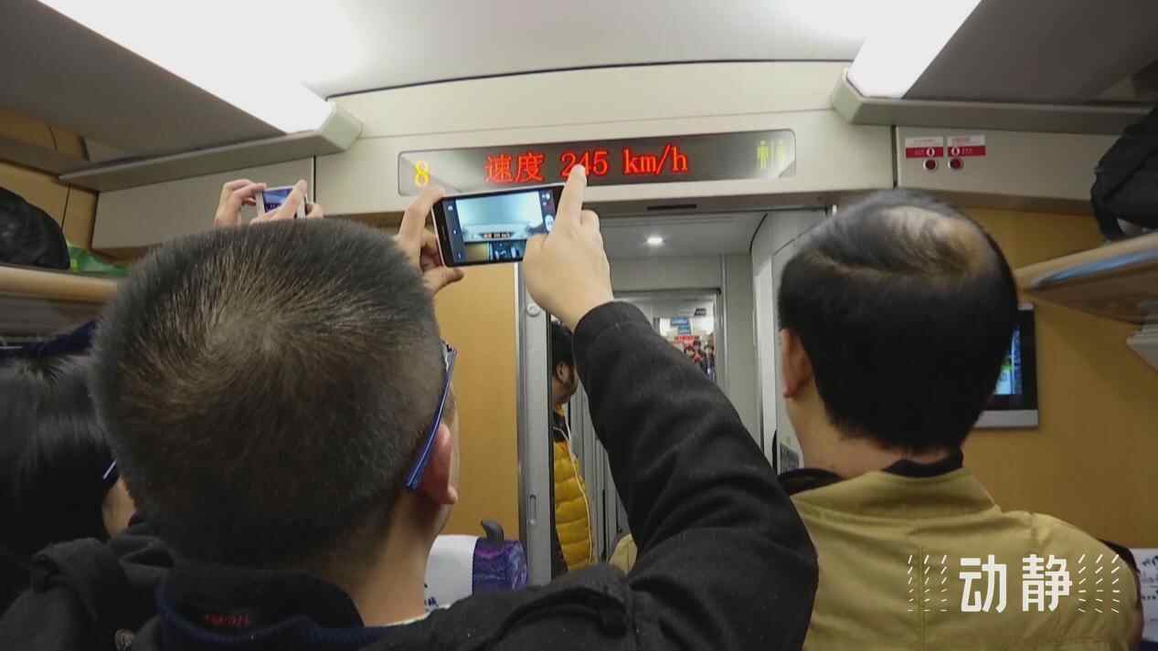 这趟列车的设计时速为250公里,开车不到10分钟,时速就达到了245公里,乘客们纷纷用手机和相机记录着显示器上不断攀升的车速。