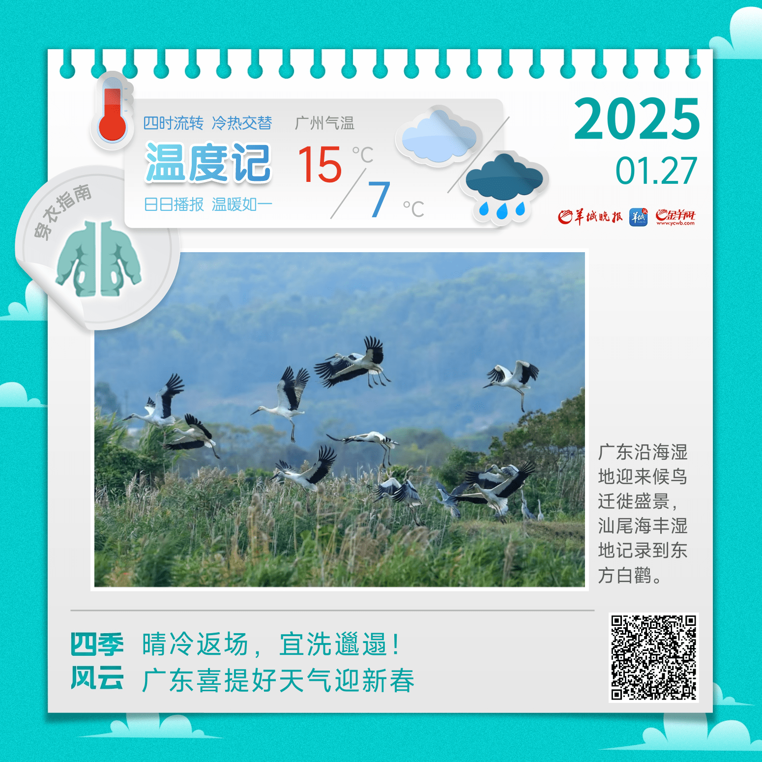 1月27日(腊月廿八),广东西部市县多云,东部市县晴到多云,最低气温:中北部市县2~5℃,高海拔山区零下3℃~1℃,有冰冻或霜冻,南部市县6~10℃。