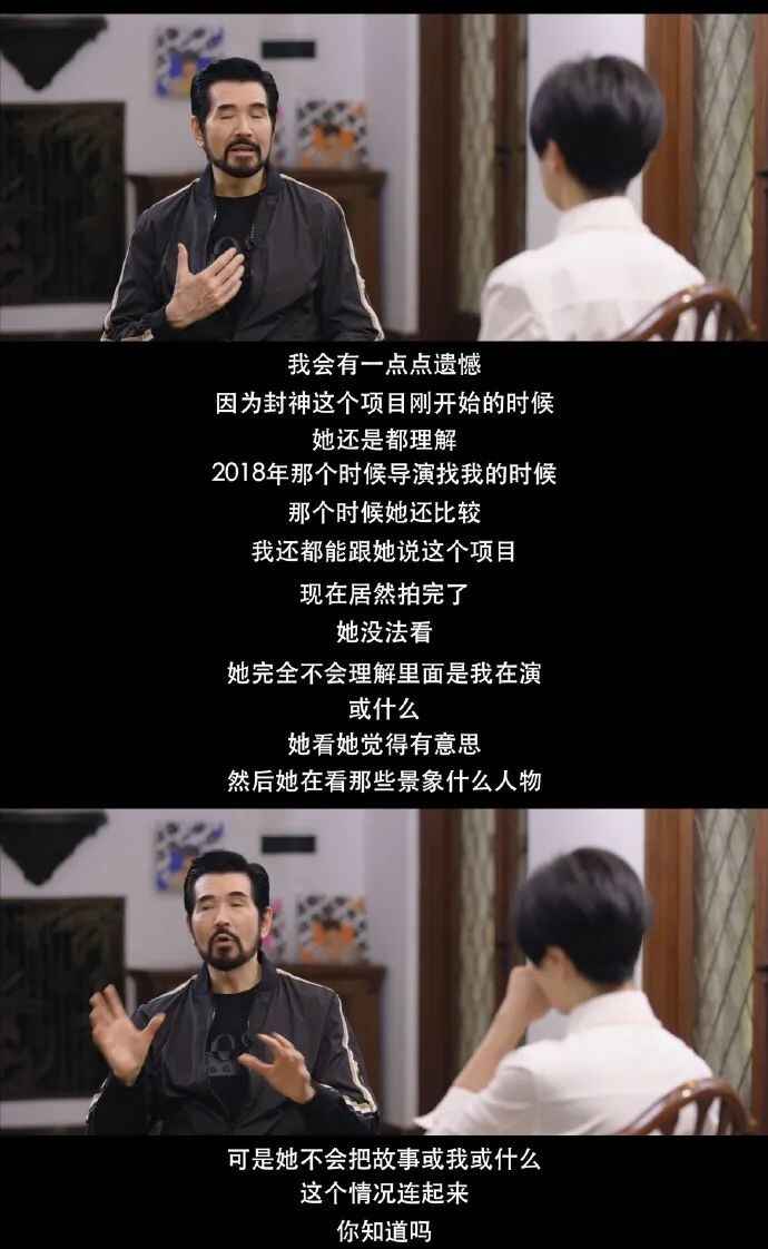 回看《封神》去年上映时费翔的采访,谈及母亲93岁已经记不清事情了,5年前拍摄《封神》的时候还可以谈论关于这部电影,但现在母亲已经不知道事情了。父母的老去,是每个子女都要面对的生命课题。面对母亲的衰老,费翔哽咽着说,多么希望曾经那个坚强的母亲还在,但是他也深知,母亲现在每一天都过得很快乐,就像“飘在自己的云朵上”。