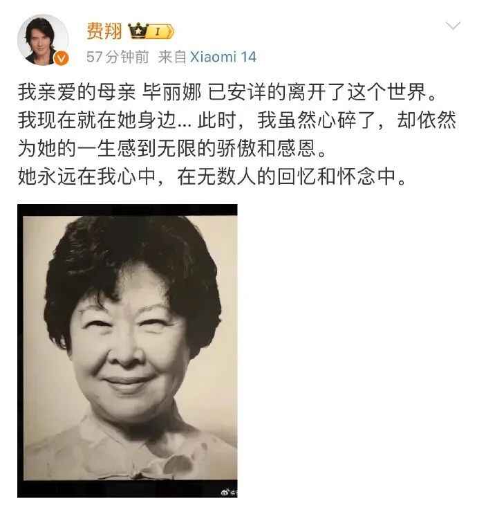 2024年5月20日,费翔通过个人微博发文告别母亲。