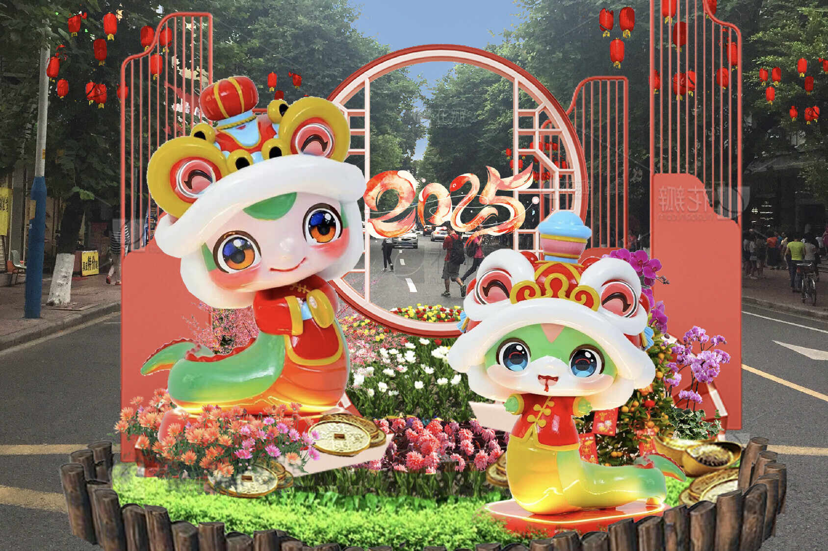 广州市越秀区花市办副主任陈煜,接触花市筹备工作已整整11年,算得上这一方面的行家。陈煜表示,在花市的设计方面,设计稿距离最后呈现出来的版本,修改了不止20稿。“今年是蛇年,造型设计上,以铜壶滴漏的玄武造型为基础,同时还取材于故宫博物院、湖北省博物馆中关于玄武的元素,将蛇具象化。在设计时减少狰狞的形态,还借鉴了岭南传统的舞狮元素,让造型灵动可爱,避免吓到小朋友,力求呈现出独特又符合大众审美的设计。”