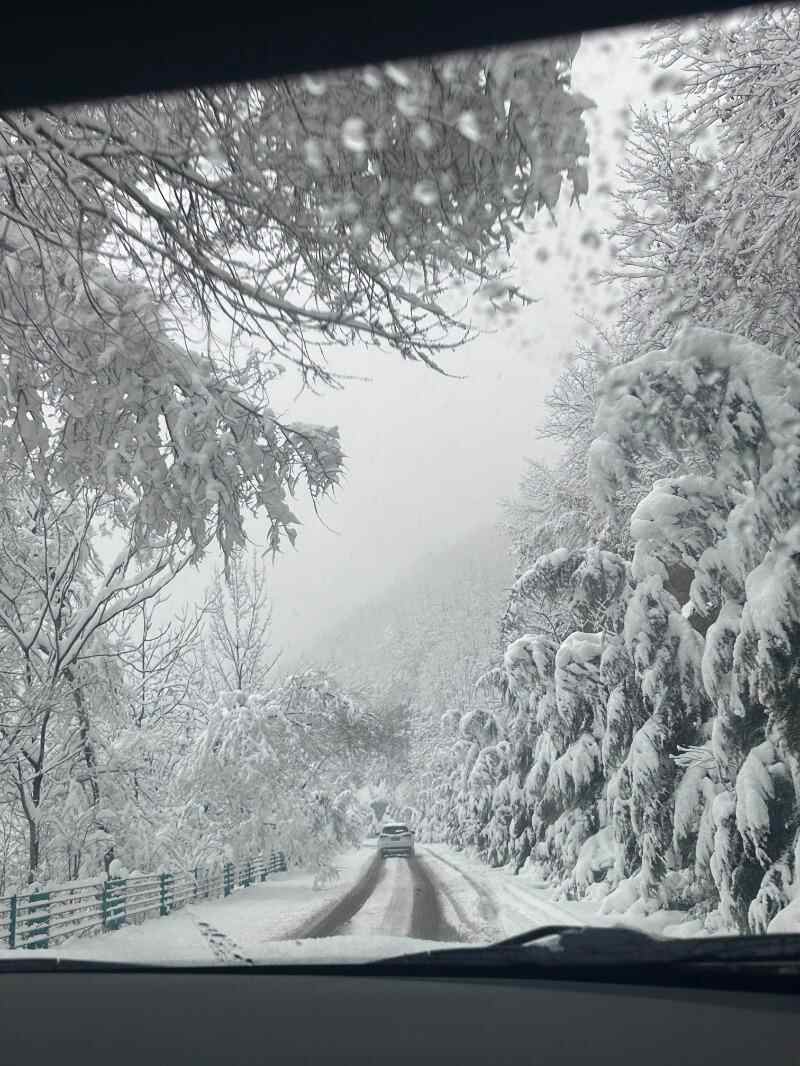 这一路很惊险,有时我们遇到被大雪压垮的树枝横在道路上,弟弟下车去把树枝推走;有时我们以为路是通的,走到一半发现过不去了,我有好多次濒临崩溃。