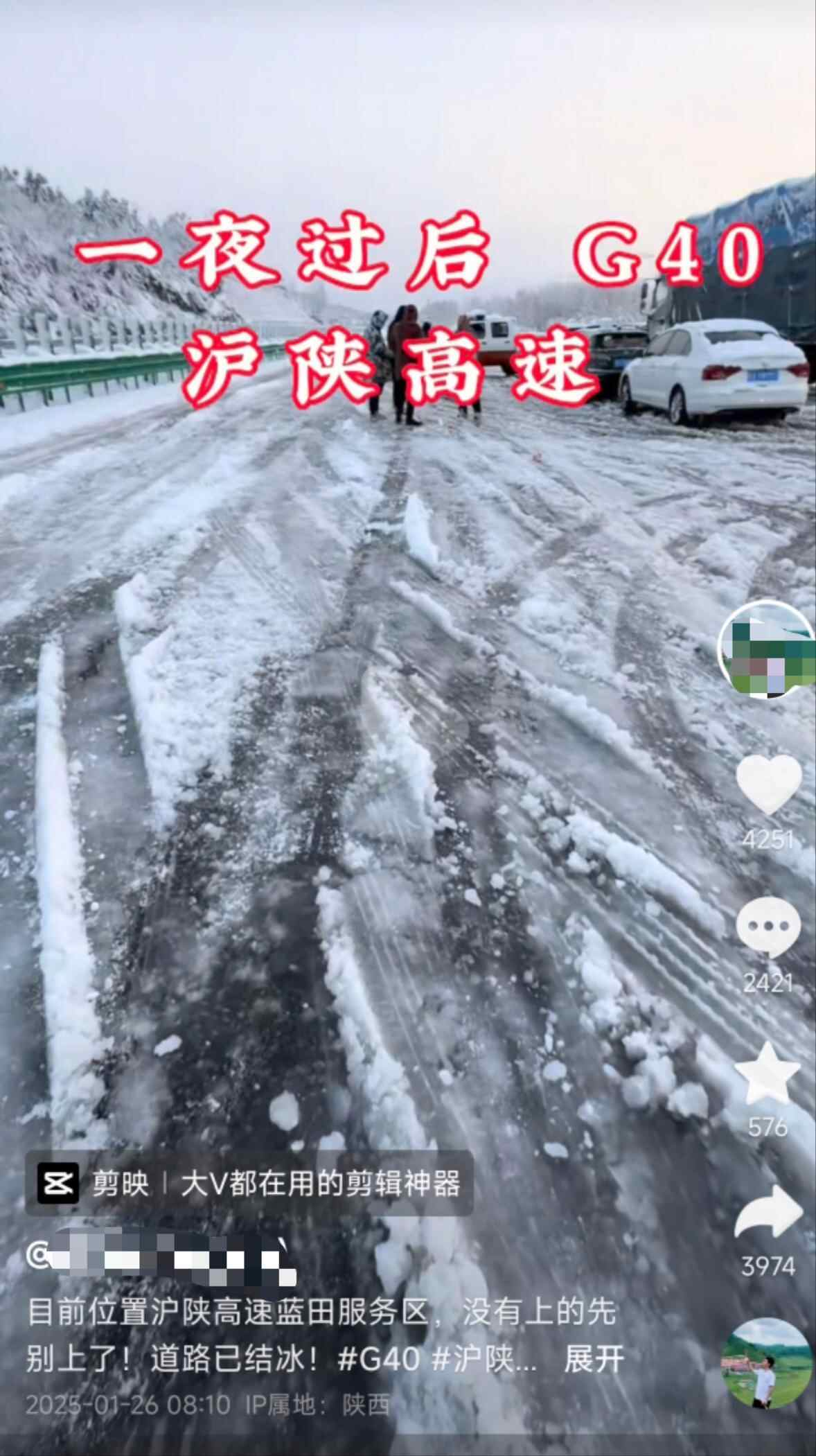 我们在出发之前就做了一些准备,规划好了一些路线,因为我看到新闻说,西安这边有暴雪,秦岭还有七级大风。前一天晚上,即1月24日,我还特意去看了一下沪陕高速上的情况,路上还是有一些积雪,对向往陕的车道可以正常行驶,但我们回家的方向处于交通管制状态。到第二天早上,大约10点,我又去看了下路上的情况,两边都可以正常行驶了,我们才开始出发。