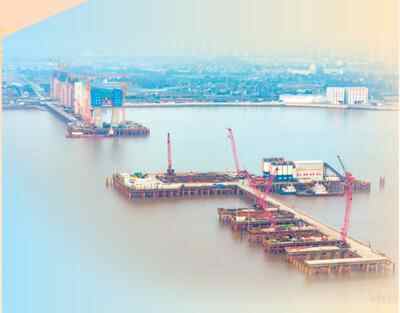 杭州湾跨海铁路大桥1—12号桥墩施工现场。