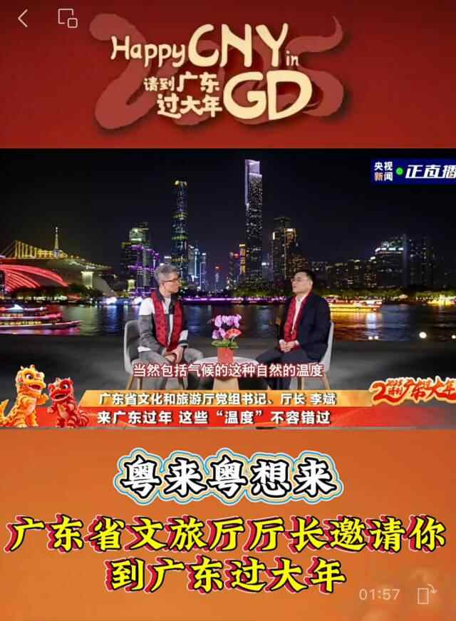 1月初,央视新闻全平台播出《广东省文旅厅邀请全球游客来广东过年》系列短片