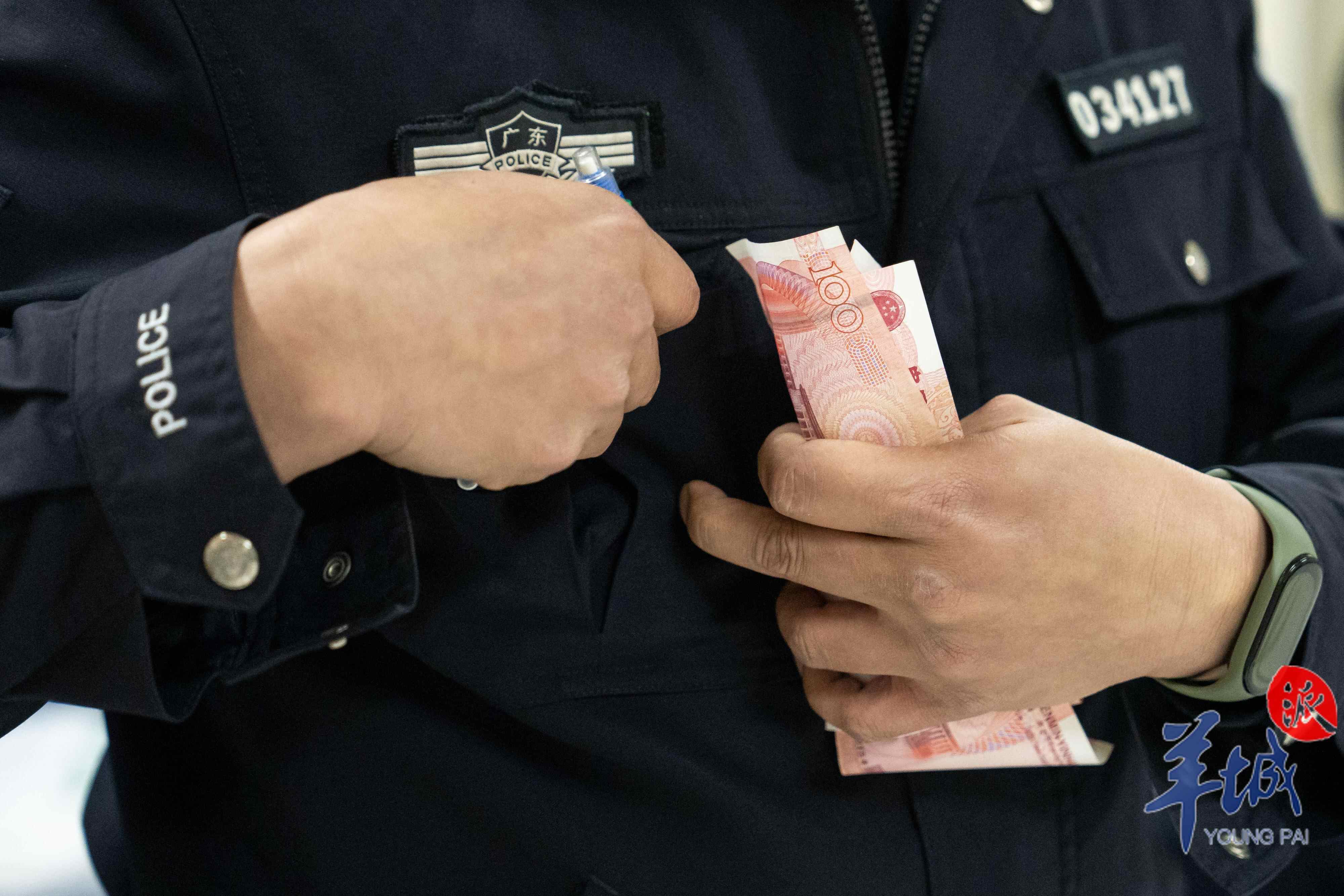 在理解的基础上,梁健强慢慢融入火车站广场,甚至养成了过去不会有的习惯——随身带点现金。遇到处境窘迫的旅客,他就自掏腰包帮对方一把。有次,一个大哥问他借30块,想凑一张回老家的火车票。“一个成年人,要不是实在没办法,不会轻易开这个口。”最后,梁健强收下大哥的200多块现金,一次性转了300多块到对方卡上。“我当然不是每天都做这种事,但一年下来,总归会碰上这些需要帮助的人。”今年元旦,梁健强又到银行取了10张崭新的一百块,叠整齐、折成小方块,放进警用装备腰带包里,以备不时之需。