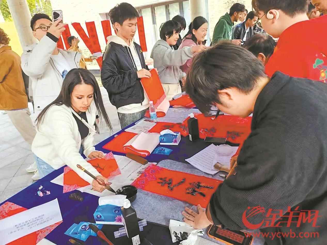 在华南理工大学各个校区,众多师生书法爱好者齐聚一堂,挥毫泼墨。“这样的活动形式既满含新春祝福,又传承传统文化。”华工学生吴睿祺表示。不少海外留学生也参与其中,尝试用汉字书写春联,表达对新春佳节的祝福。