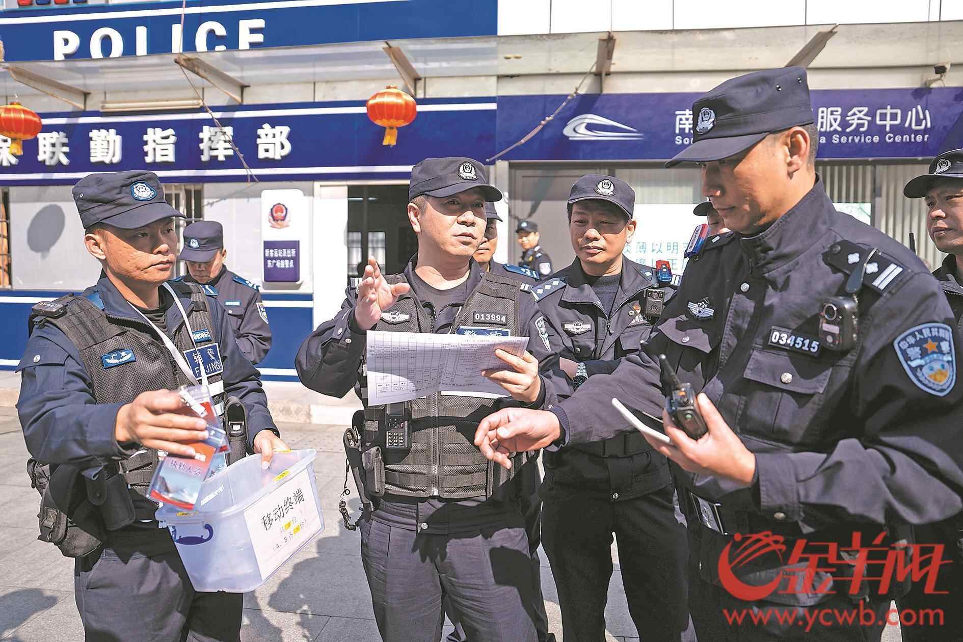 “你们是从1号桥墩到11号桥墩,负责单边的南路……”下午两点,二三十名民警在新客运站派出所门口列队,新客运站派出所二级警长黄胜峰有条不紊地布置执勤任务。接着,他们分组前往东西广场及周边进行不间断巡逻,“确保旅客顺利到达南站,平安离开南站。”