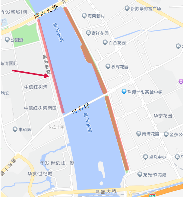 (四)南屏镇:前山河西岸前山大桥至白石桥段。