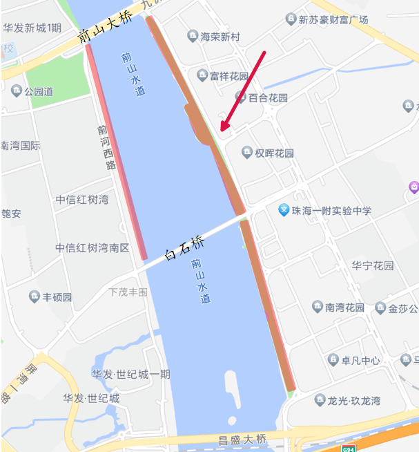 (三)拱北街道:前山河东岸夏湾段。