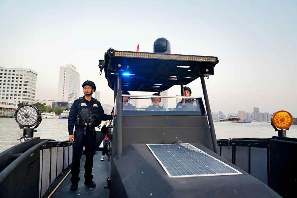 这是当天烟花汇演安保工作的一幕幕缩影。事实上,早在发射船和烟花“发往”广州之际,警方的安全保障工作已经陆续铺开。“我们要开具购买证、运输证”,荔湾区公安分局治安大队民警张尚中介绍,从烟花的运输、装卸,再到安装、转移至燃放水域,全程都要跟进。“既要保证烟花能放起来,还要保证不出现意外。”