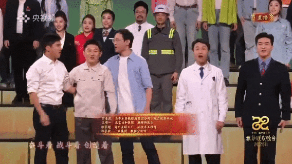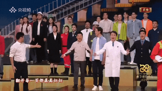 注意看,他们身穿自家衣柜里的工装和便装,有的戴着头盔,有的口袋里还插着几支笔,仿佛刚下班就走上舞台,你唱完一句,我拍拍肩膀微笑鼓励,什么样的歌手,能把春晚变成“大型团建现场”?什么样的歌曲,有着宏大开阔的主题,却能在每一张平凡面孔的质朴演绎下,流淌出温暖动人的内心情感?