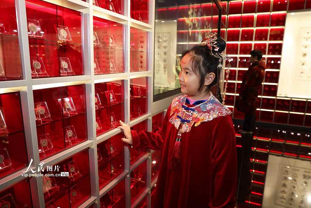 大年初一,这一天在浙江省湖州市德清县乾元镇的钱币馆,市民和游客们纷纷前来参观,通过万花筒、古钱币、钱币雨等展览,深入感受钱币的历史、文化魅力。倪立芳摄(人民图片网)