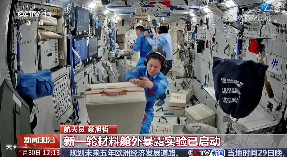航天员 蔡旭哲:这三个月来,我们完成了与神舟十八号航天员乘组的在轨轮换,按计划进行了空间站平台的维护照料及生活照料和健康保障。另外,我们还完成了两次的舱外活动,还开展了全系统压力应急演练、医疗救护演练等在轨训练项目。在轨期间,在地面人员的支持下,完成了以人脑类器官先进研究为代表的医学细胞学实验等,新一轮材料舱外暴露实验已启动。我们乘组也常态化地进行了相关组件的更换等操作,确保实验的进展顺利。