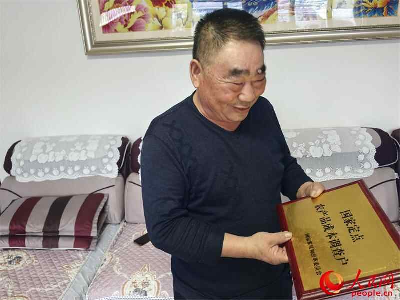 李强向记者展示他获得的“国家定点农产品成本调查户”牌匾。人民网记者 陈新辉摄