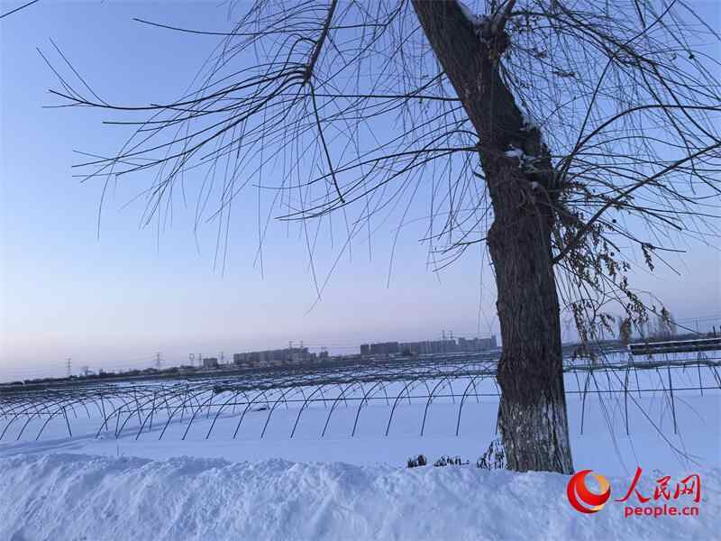天山脚下,青格达湖边,下了一天一夜的大雪刚停,刘建军就去了隔壁新联村的清洁能源智能温室育苗大棚,看看前几天育的茄子发芽了没。