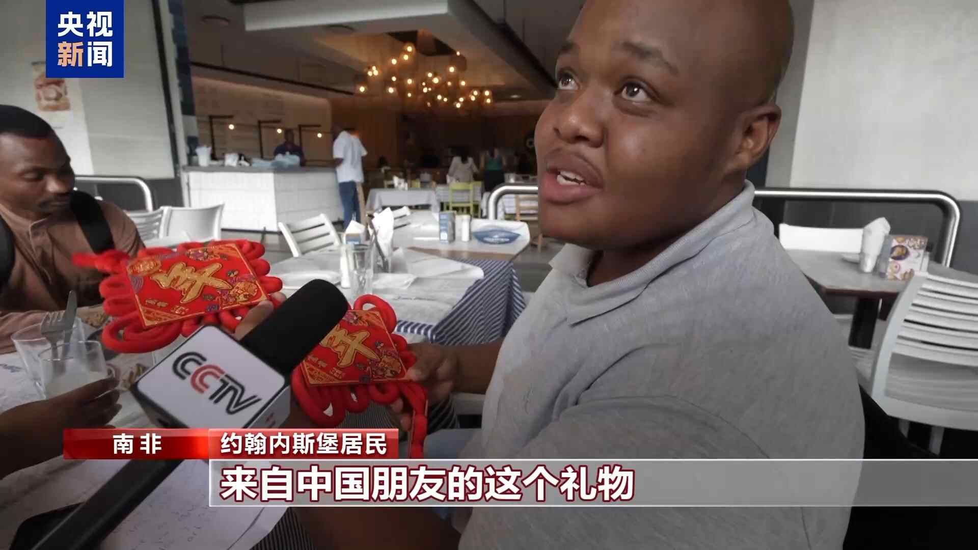 南非约翰内斯堡居民:有一位中国朋友,他昨天给了我这个。我刚刚向我的朋友们展示来自中国朋友的礼物。我所知的中国春节是一家人团聚,一起吃饭庆祝。这是很美好的事,这也是我很欣赏的一点。当新年到来,人们在庆祝的时候也会表达对彼此的关心和团结。