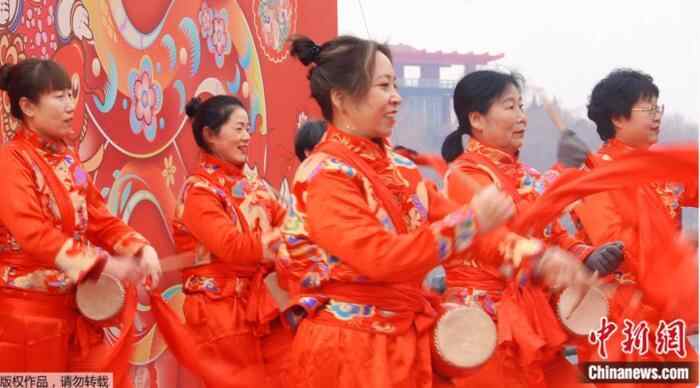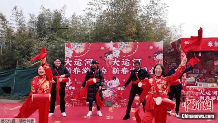 大运河新春游园会腰鼓表演。中新网 林勐男 摄