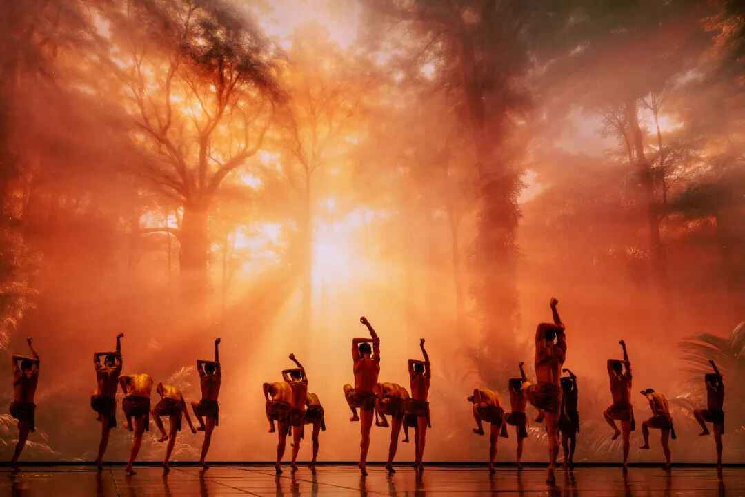 “光影”效果的应用,让整支舞蹈的沉浸感进一步升级,让大象的塑造既磅礴又细腻。在总台台长对光影的直接指导调度下,舞者们时而穿梭于斑驳树影,时而沐浴在清晨薄雾,在舞台不断变化的光线中,如同置身云南的热带雨林。剪影的手法勾勒出人体模仿大象的轮廓,放大了傣族舞蹈“拟态仿生”的一大特色,营造出“象在人中,人在象中”的视觉表达,让象的精神在人的身上得以复现。