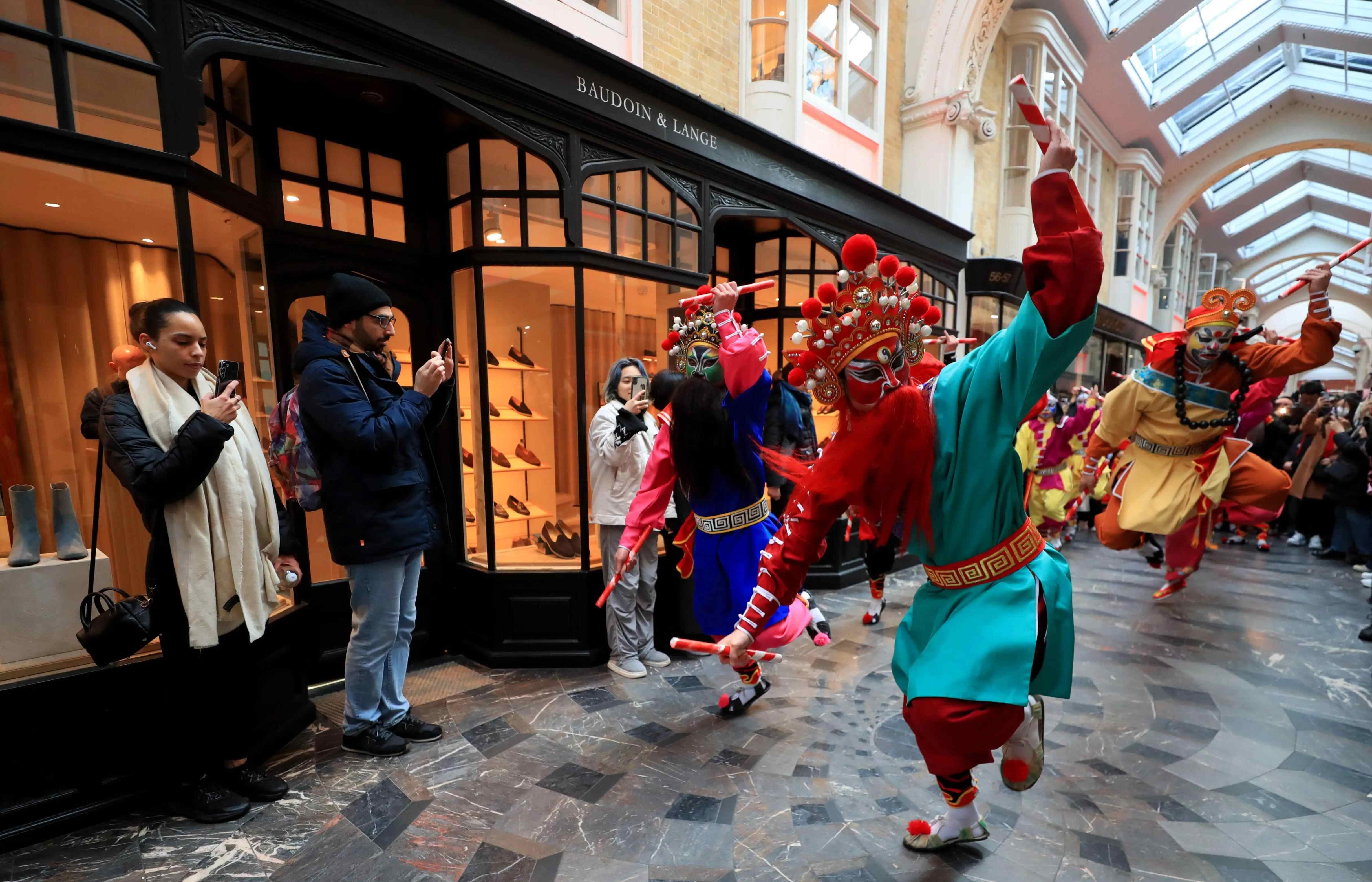 2024年春节期间,广东普宁的南山英歌队曾受邀前往英国伦敦,在伦敦最古老商业街——伯灵顿拱廊和特拉法加广场进行精彩表演,吸引超70万观众的目光。