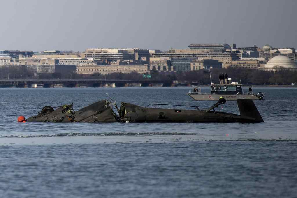 1月29日晚,美国航空公司的AA5342航班在首都华盛顿与一架“黑鹰”直升机相撞,两机发生爆炸后坠河(上图),无人生还,共有67人遇难。