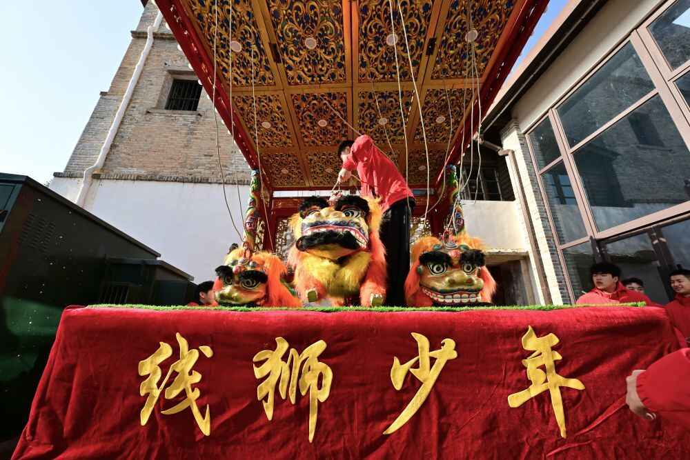 “兴贤少年线狮队”现身福州市上下杭历史文化街区