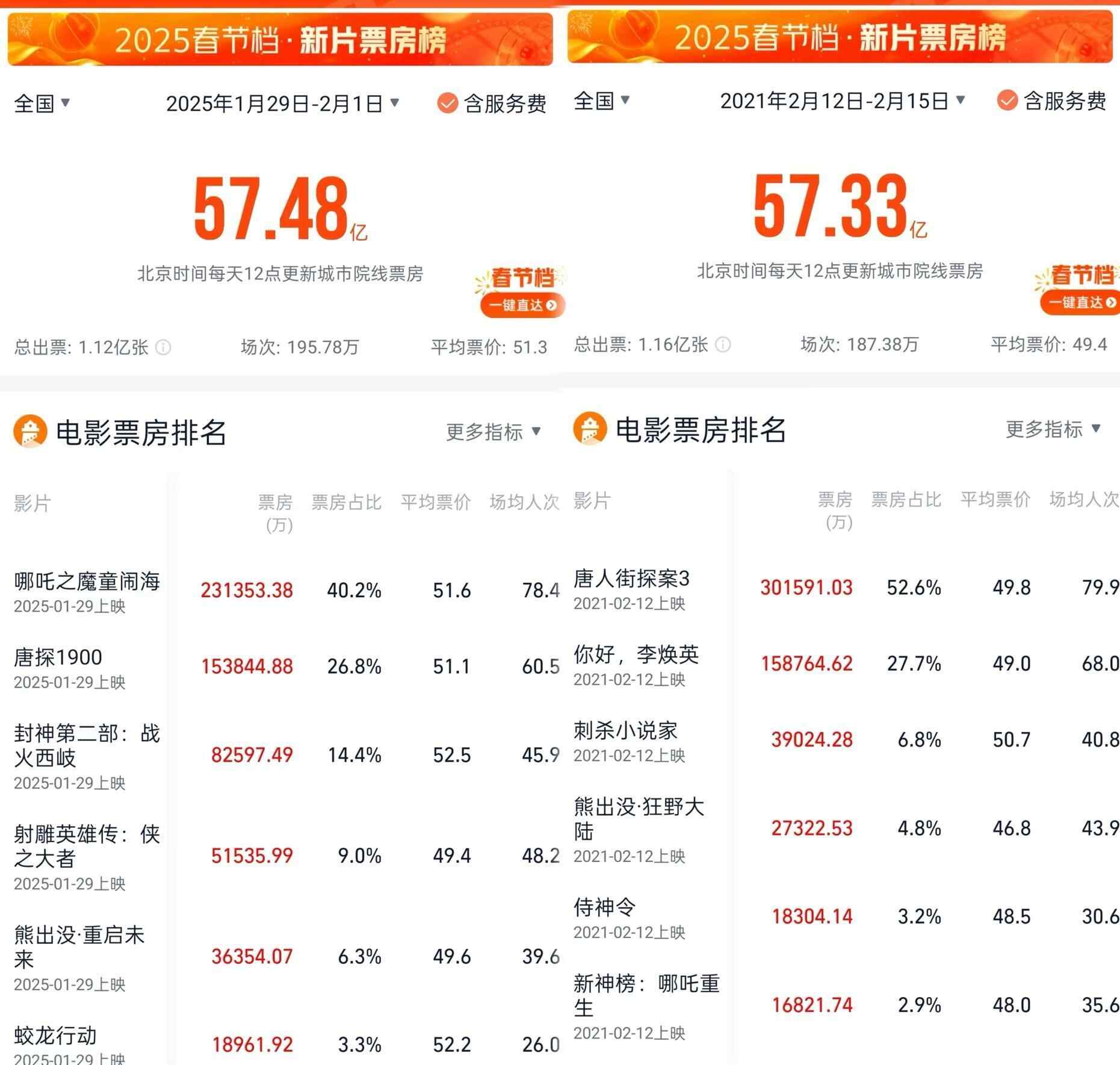 超过2021年初一至初四累计票房(57.33亿)