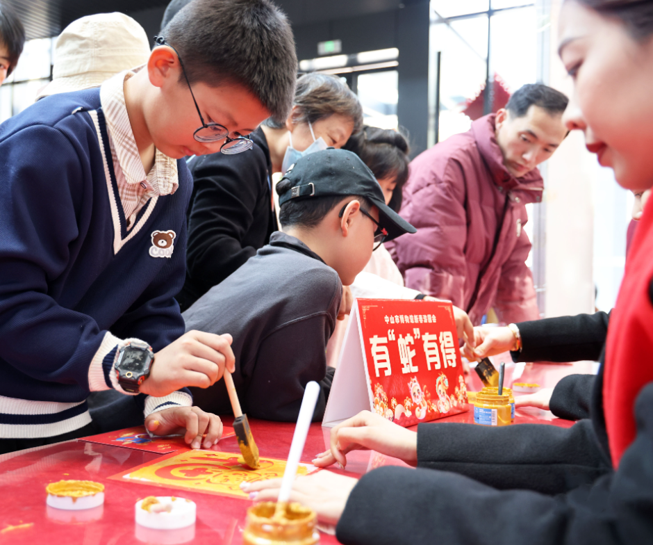 除了节目展演,博物馆还设置了多个互动体验区。在“四时有序 喜迎新春”传统文化体验活动中,游客们通过“找福字”“成语填空”“飞花令”“非遗食物”等游戏,感受了四季的变化与春节的喜庆氛围。