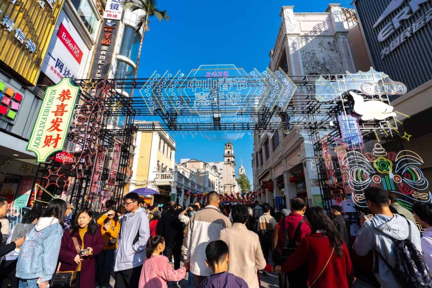今年春节假期,焕新升级的孙文西路步行街成为游客打卡的主要目的地之一。1月29日大年初一,2025年中山春节嘉年华在此拉开帷幕。连日来,以“金蛇舞香山 岐来贺新春”为主题的嘉年华融合中山美食文化、非物质文化遗产和中华优秀传统文化元素,通过美食品鉴、文艺展演、互动体验等形式,为市民奉上最具中山味、湾区范的精彩新年。