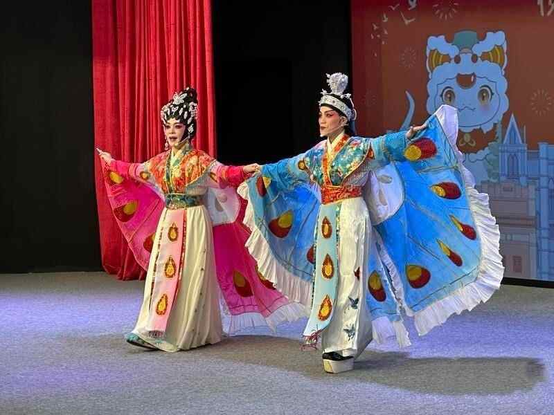 此次表演包含6个经典粤剧曲目,包括《骊宫贺寿舞霓裳》《十八相送》《梦会太湖》等。演出在经典曲目《化蝶》中拉开帷幕,演员身着华丽的戏服,凭借精湛的唱腔、细腻的表演,一招一式,一颦一笑,将剧中人物的情感和故事演绎得淋漓尽致。婉转悠扬的曲声回荡在罗马剧场的上空,现场观众沉浸在粤剧的世界中,如痴如醉。